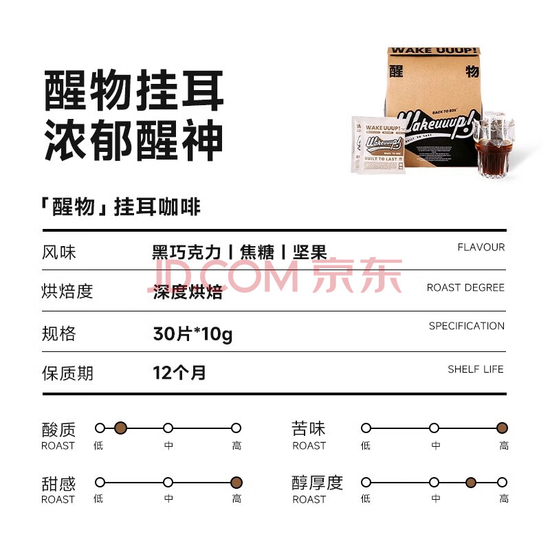 商品名称:M2M醒物挂耳咖啡 香醇低酸醒神 新鲜现磨拼配黑咖啡粉手冲美式30片