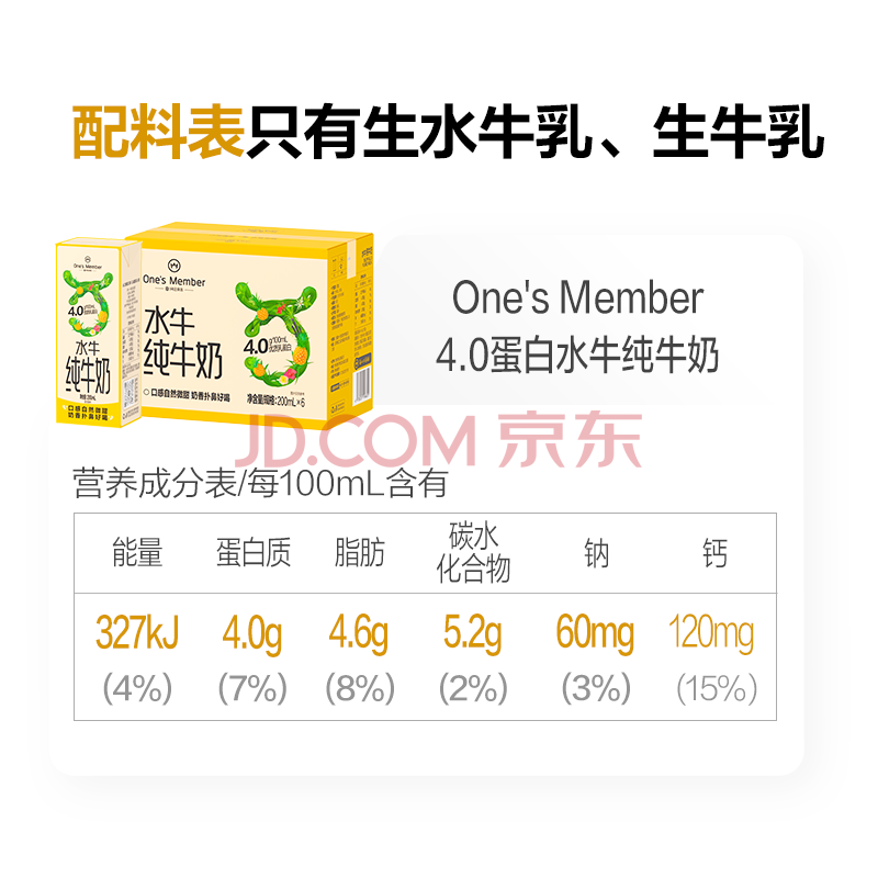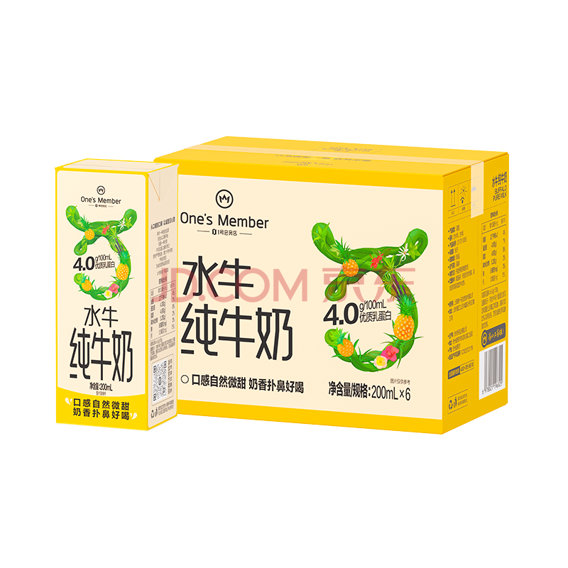 商品名称:1号会员店(One's Member)4.0g蛋白水牛纯牛奶 200ml*6盒 尝鲜装 营养早餐奶水牛奶