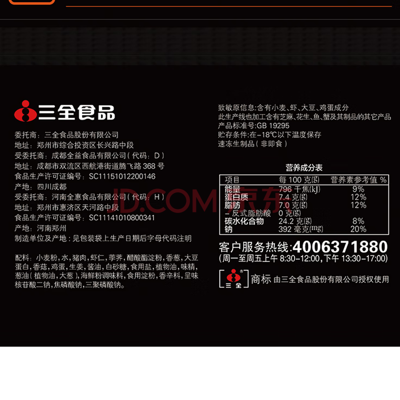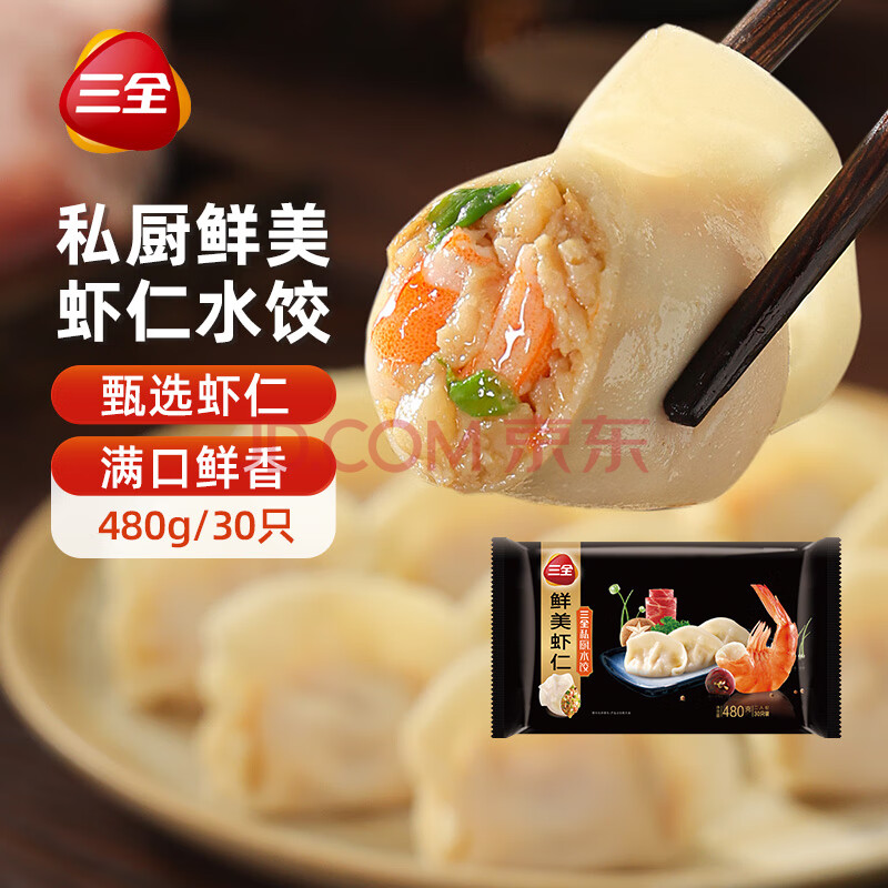 商品名称:三全私厨系列鲜美虾仁水饺480g30只 虾饺早餐食品速冻饺子蒸饺煎饺