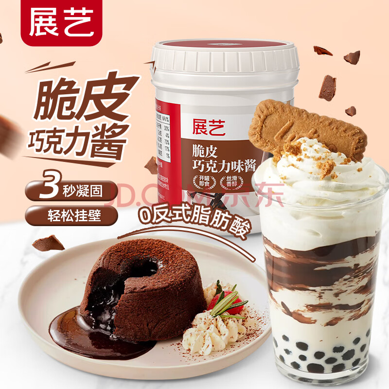 > 展艺脆皮巧克力酱 冰淇淋早餐面包涂抹酱料0反式脂肪酸烘焙原料300g
