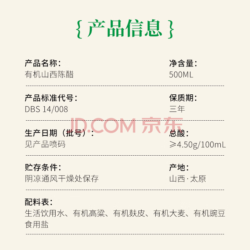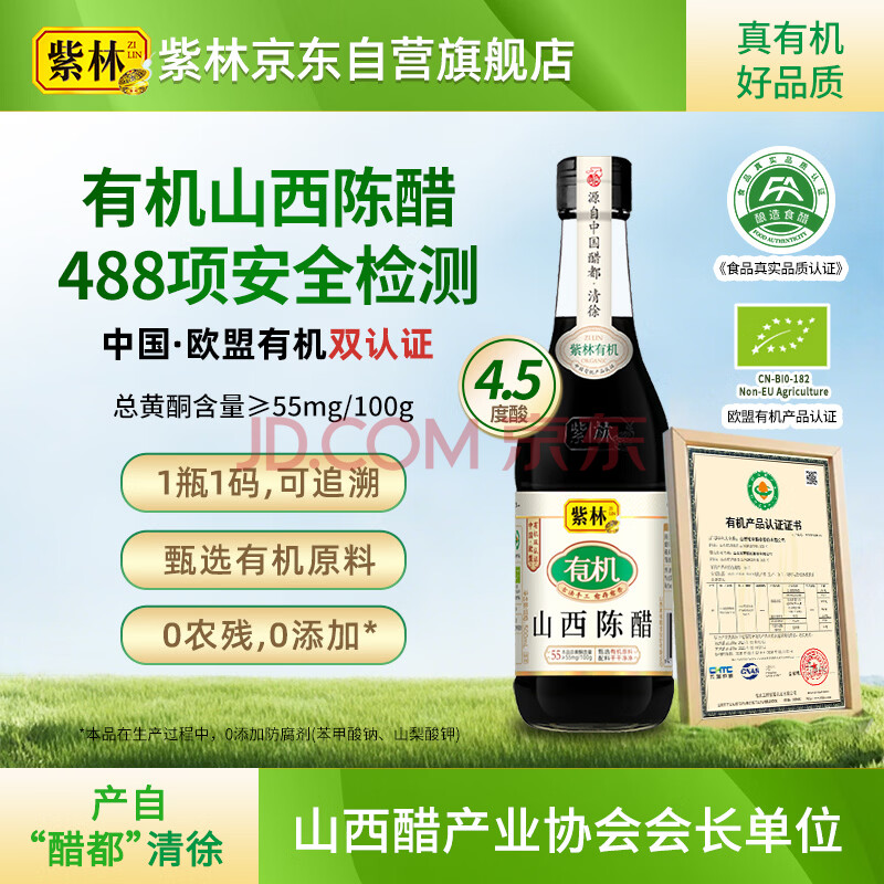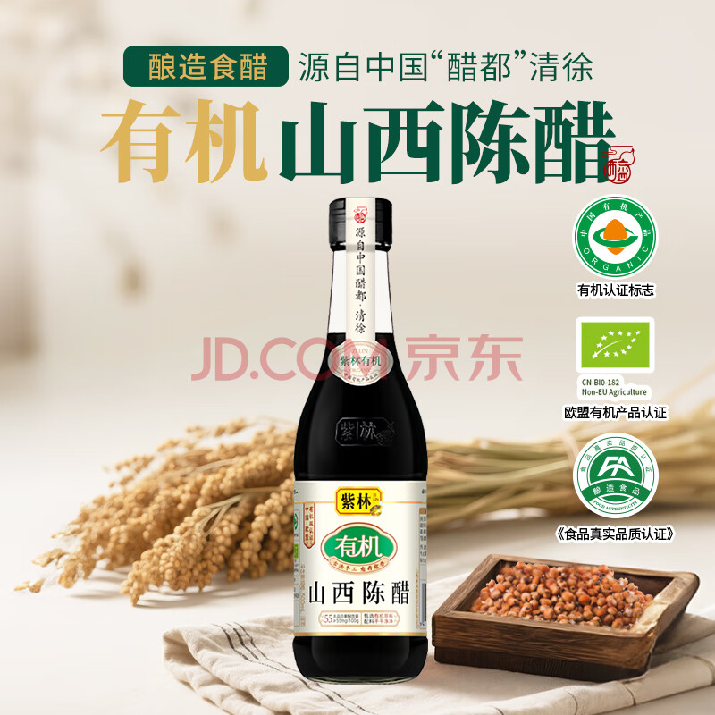 商品名称:紫林4.5度有机陈醋500ml有机认证一瓶一码凉拌点蘸饺子酿造醋山西特产