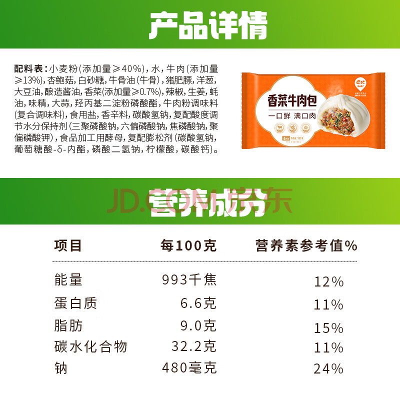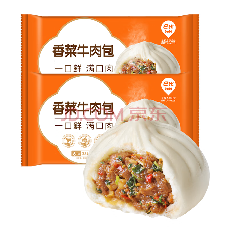 商品名称:巴比 香菜牛肉包510g*2包12只早餐速食速冻面点包子半成品懒人加热