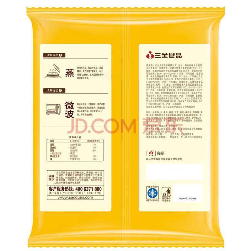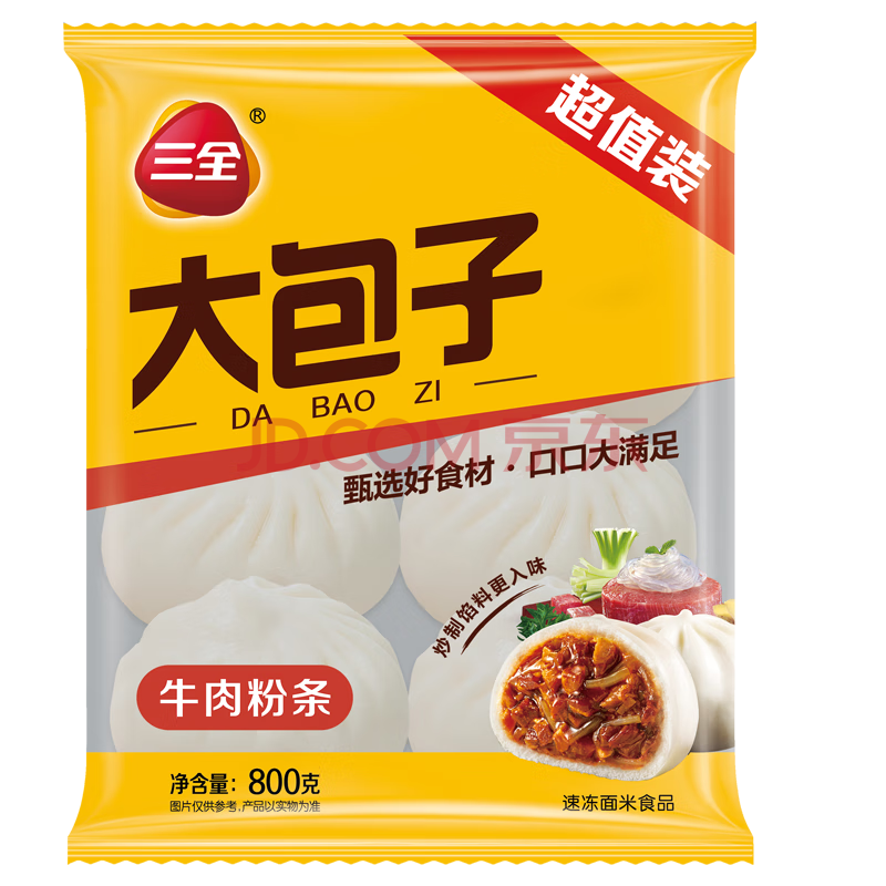 商品名称:三全牛肉粉条包子800g早餐速冻小笼包半成品面点大礼包