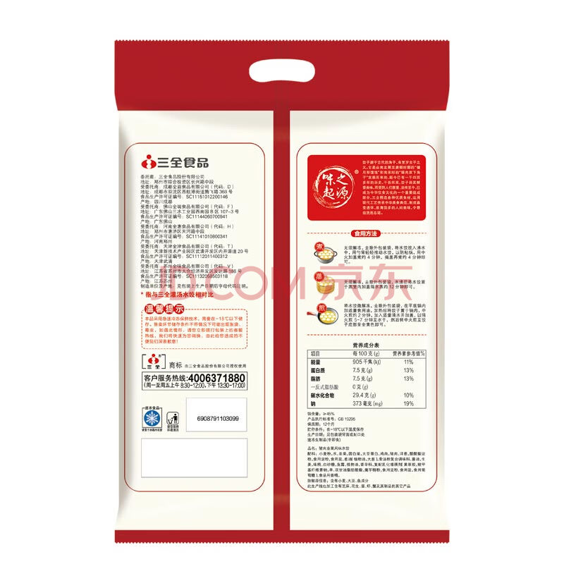 商品名称:三全猪肉韭菜水饺1005g速冻早餐夜宵饺子
