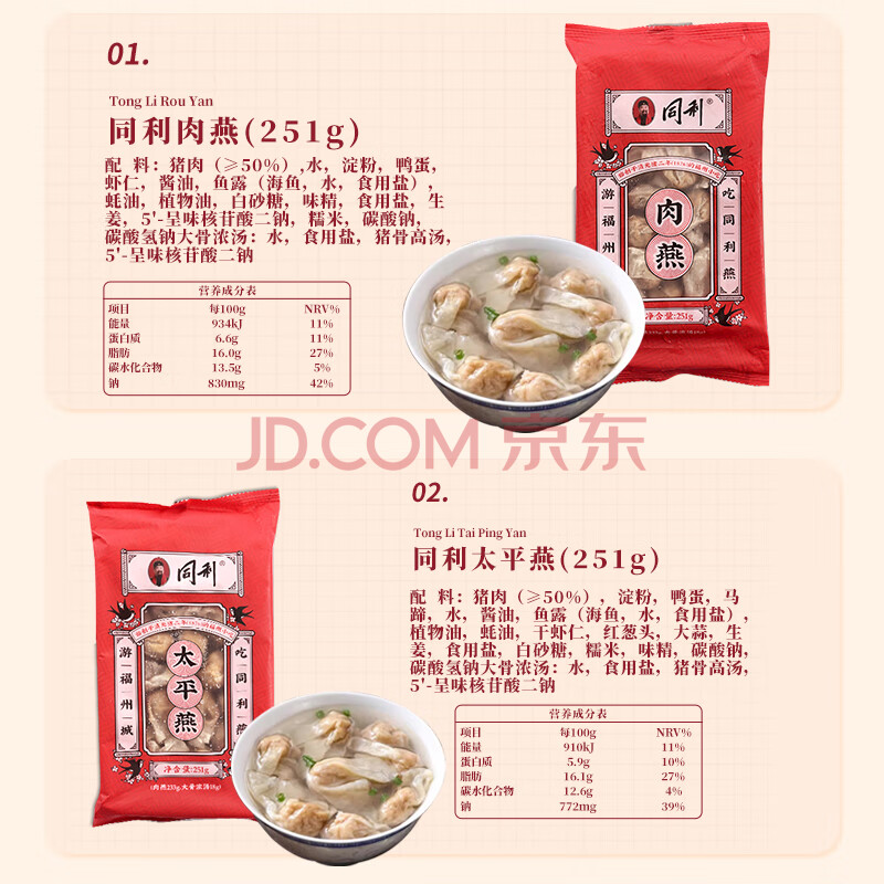 商品名称:同利肉燕福州特产肉燕中华老字号手工包制馄饨云吞肉燕251g+太平燕251g