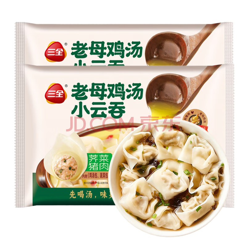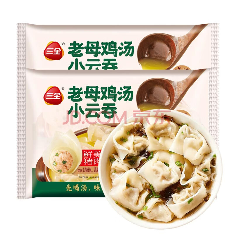 商品名称:三全猪肉鸡汤小云吞305g*3袋内含汤包蔬菜包速冻学生早餐