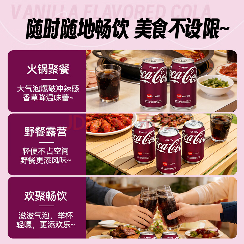 商品名称:可口可乐(Coca-Cola)樱桃味碳酸饮料330mL*3罐德国进口0脂肪清爽夏日网红汽水饮品