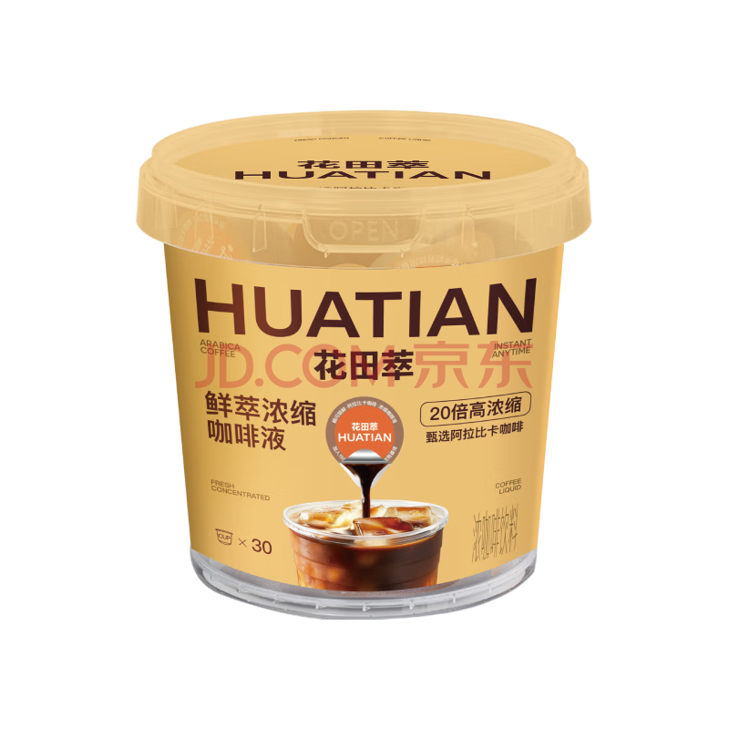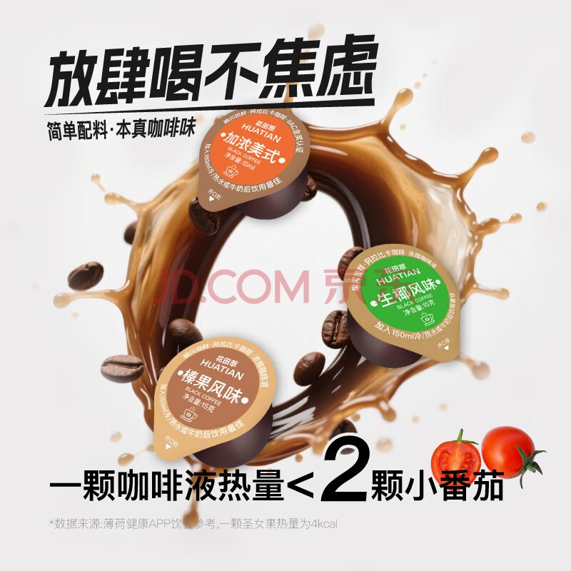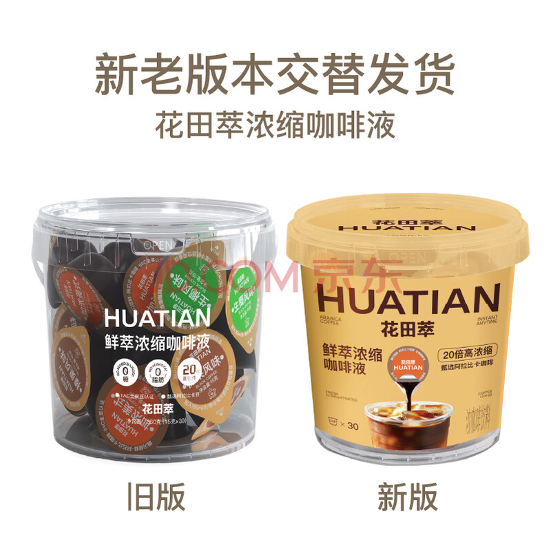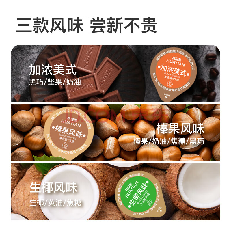 > 花田萃百亿补贴浓缩咖啡液0脂榛果生椰加浓美式3风味黑咖啡15g*30/桶