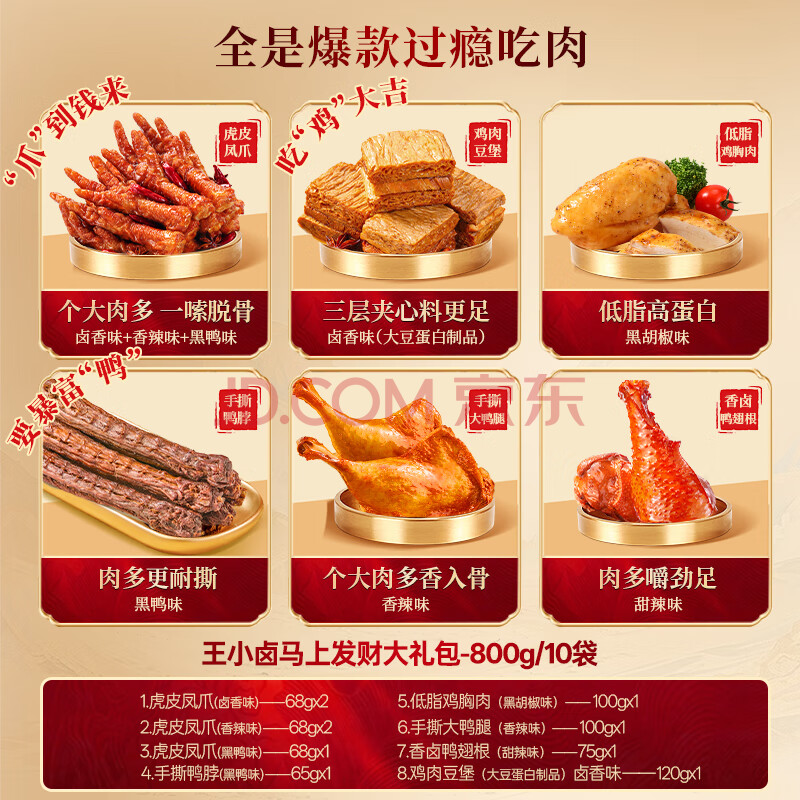 王小卤马上发财肉类零食大礼包800g马年送女生礼盒送礼公司团购鸡爪