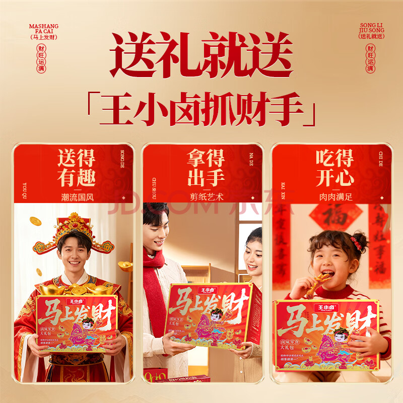 > 王小卤马上发财肉类零食大礼包800g马年送女生礼盒送礼公司团购鸡爪