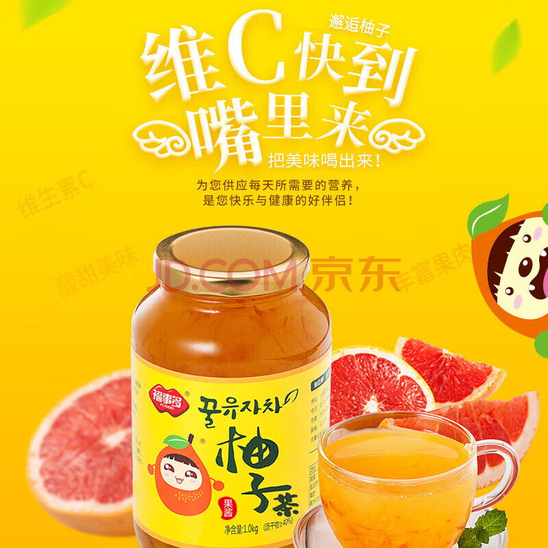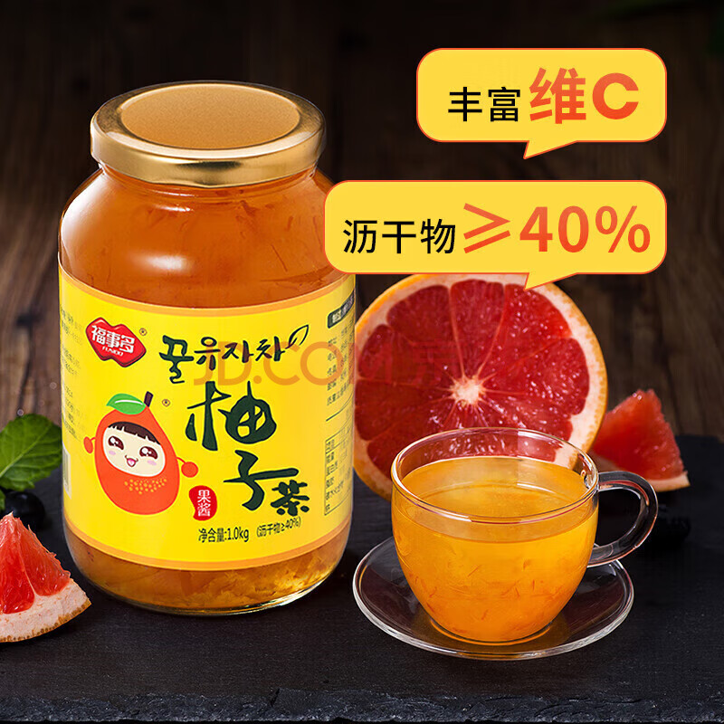 福事多蜂蜜柚子茶1kg/瓶40%沥干物冷泡茶冲饮固体饮料果酱水果茶