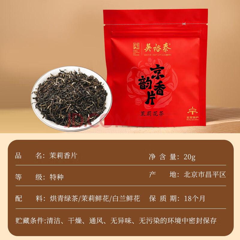 商品名称:吴裕泰茉莉花茶京韵香片20g小袋装浓香耐泡日常口粮茶老北京茶叶自己喝