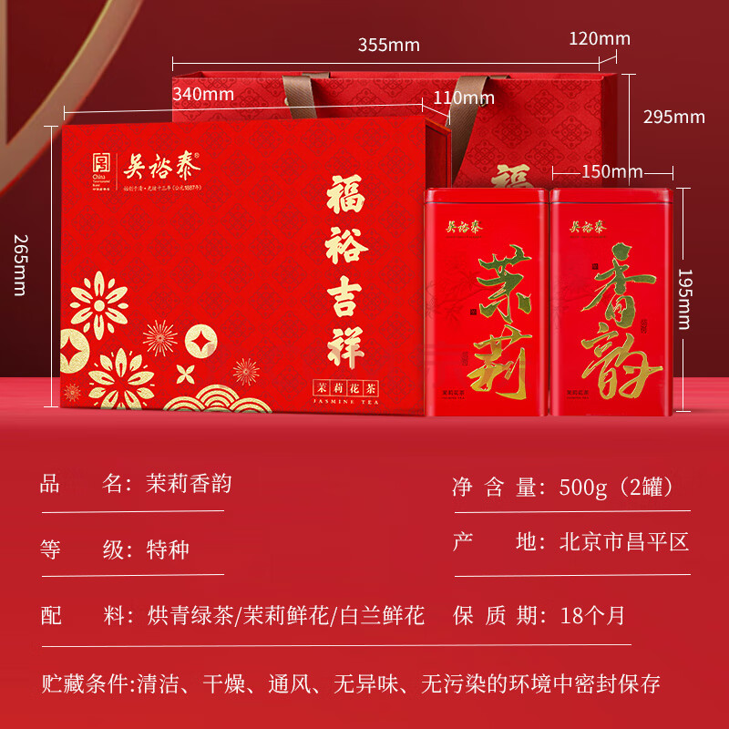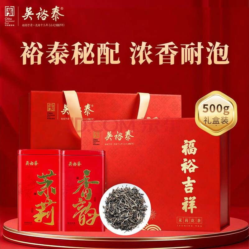 商品名称:吴裕泰茉莉花茶福裕吉祥500g礼盒装特级花茶六窨含芽浓香耐泡自饮送礼