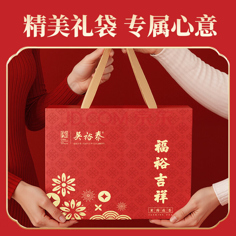 > 吴裕泰茉莉花茶福裕吉祥500g礼盒装特级花茶六窨含芽浓香耐泡自饮送礼