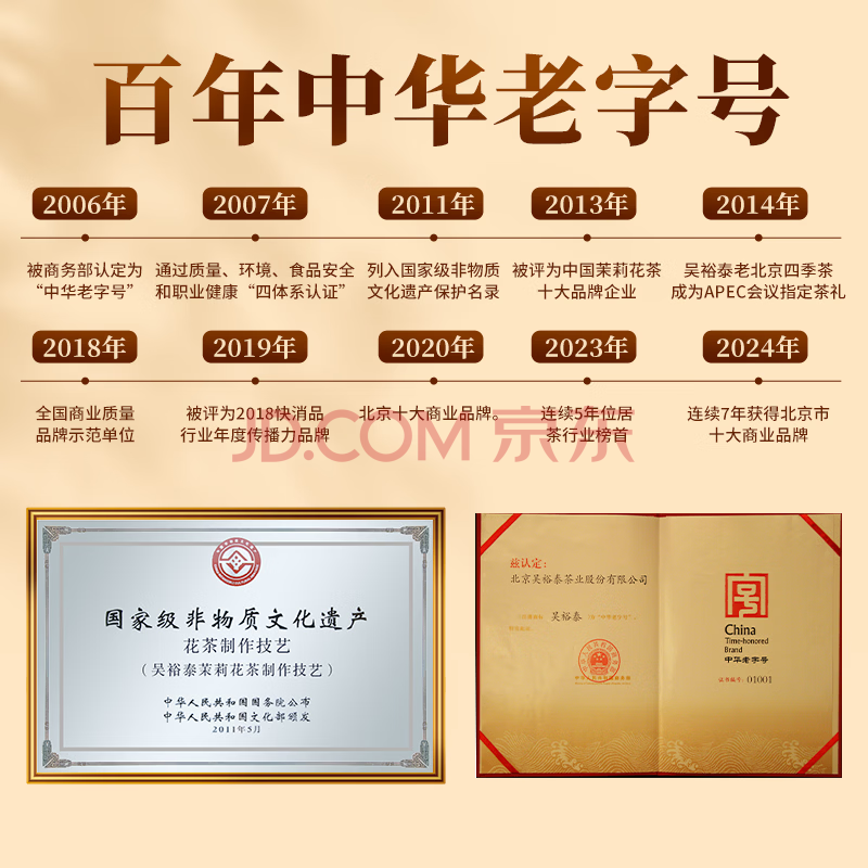 吴裕泰茉莉花茶福裕吉祥500g特级浓香新茶叶礼盒装高端茶礼送长辈自饮
