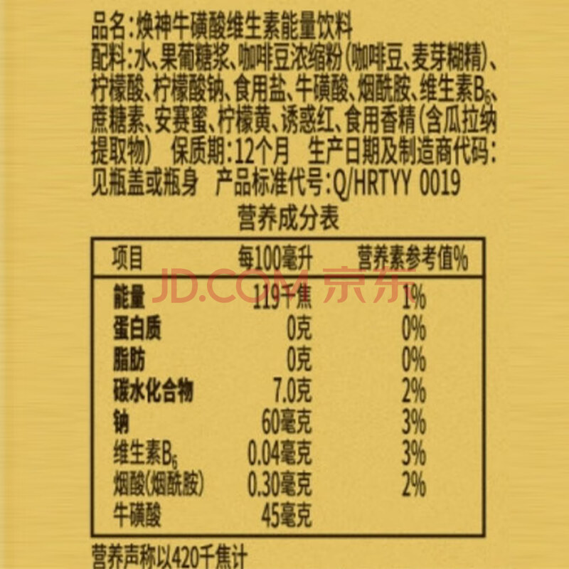 商品名称:统一焕神牛磺酸维生素能量饮料饮品500ml*18瓶