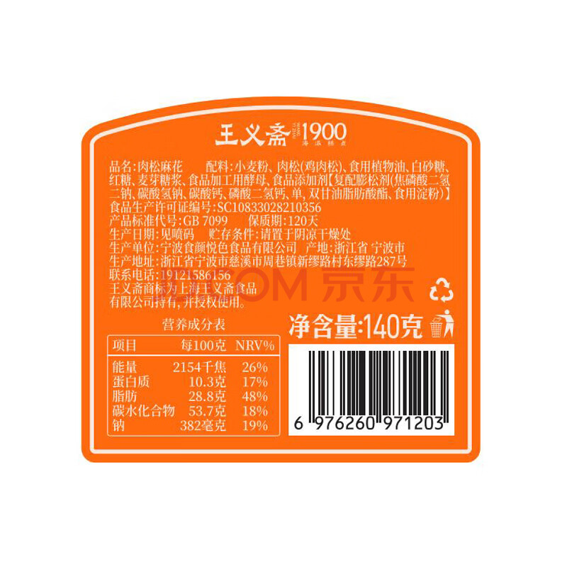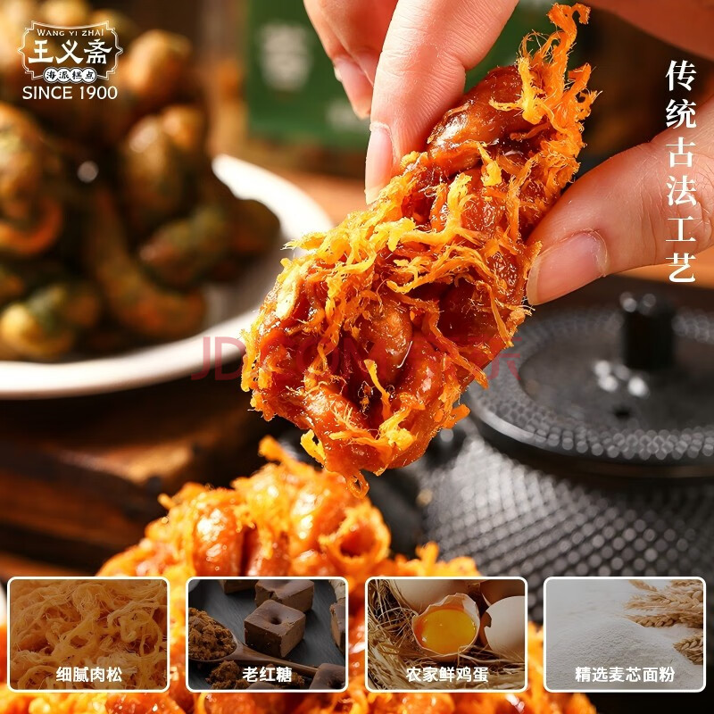 商品名称:王义斋肉松麻花140g罐装解馋小零食办公室休闲食品百年传统手工制作