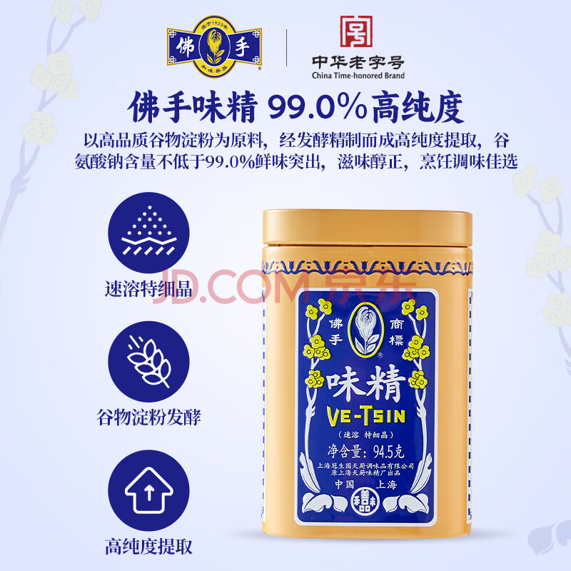 商品名称:佛手冠生园速溶特细粉状味精94.5g罐装提鲜煲汤调味料厨房炒菜调味