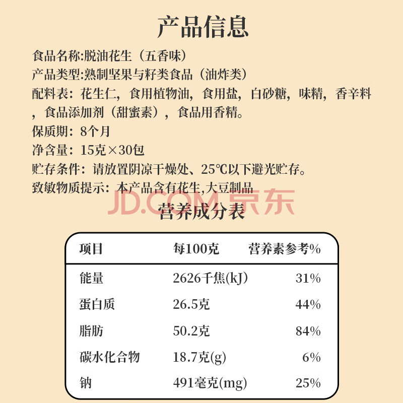 商品名称:俏己食 脱油五香烤花生米红皮山东特产小包装休闲零食品下酒菜解馋30包