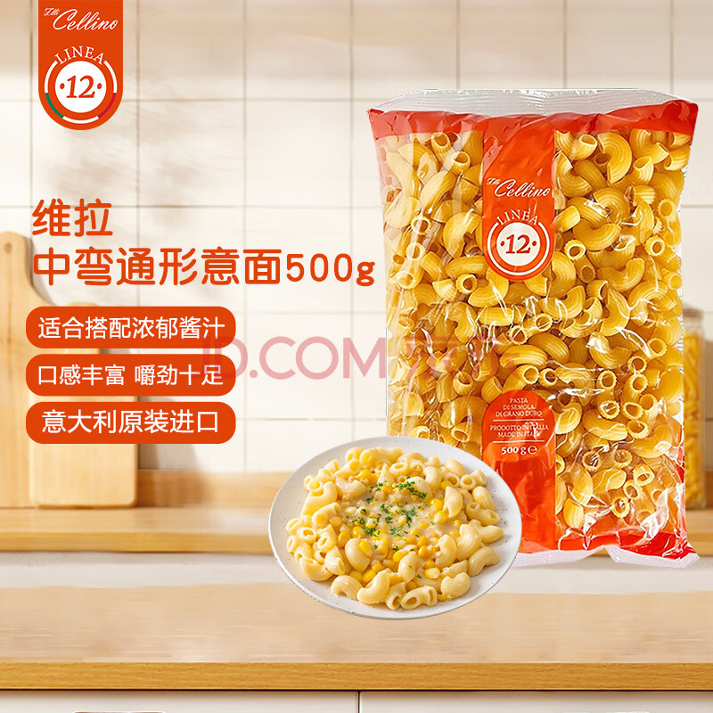 > 维拉意大利进口中弯通形意大利面500g 意面意粉速食高蛋白低脂通心粉