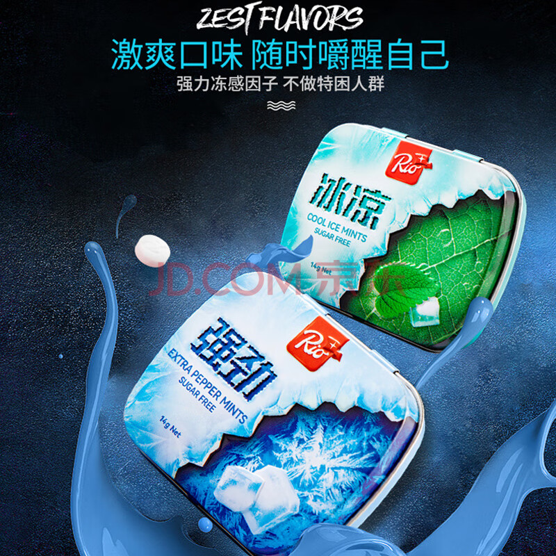 商品名称:Rio 无糖薄荷糖 酷爽冰凉 14g*2盒+15g*2盒 强劲薄荷 清新口气口香糖