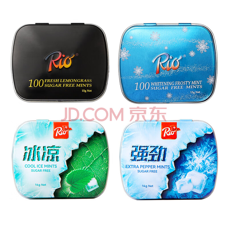 > Rio 无糖薄荷糖 酷爽冰凉 14g*2盒+15g*2盒 强劲薄荷 清新口气口香糖