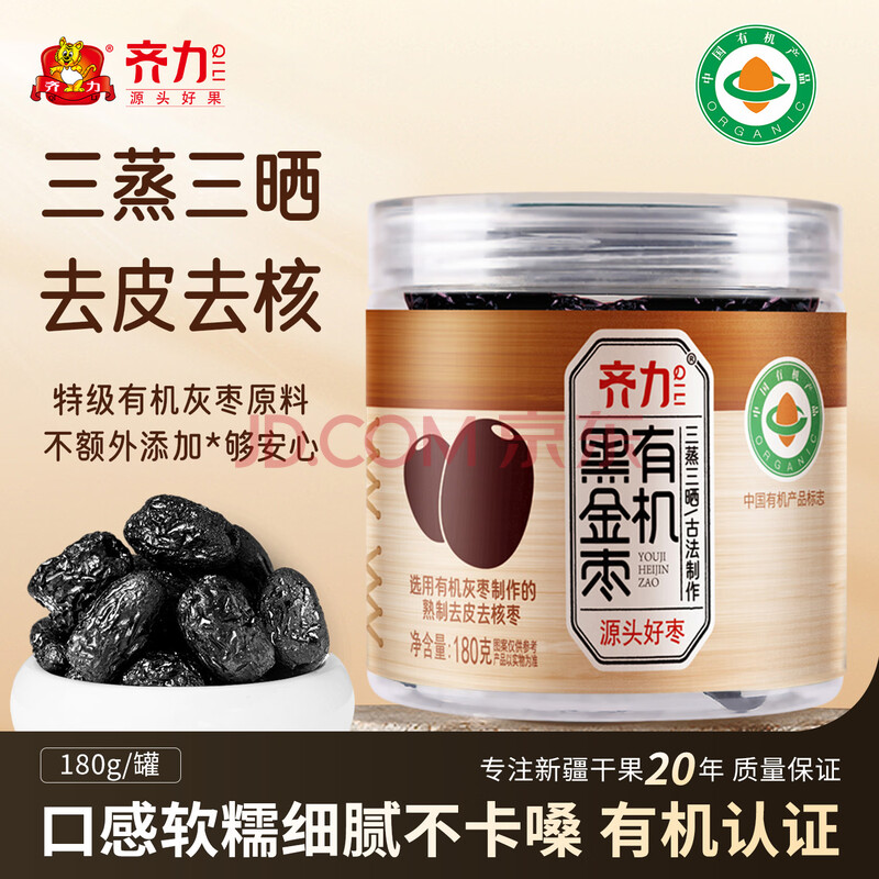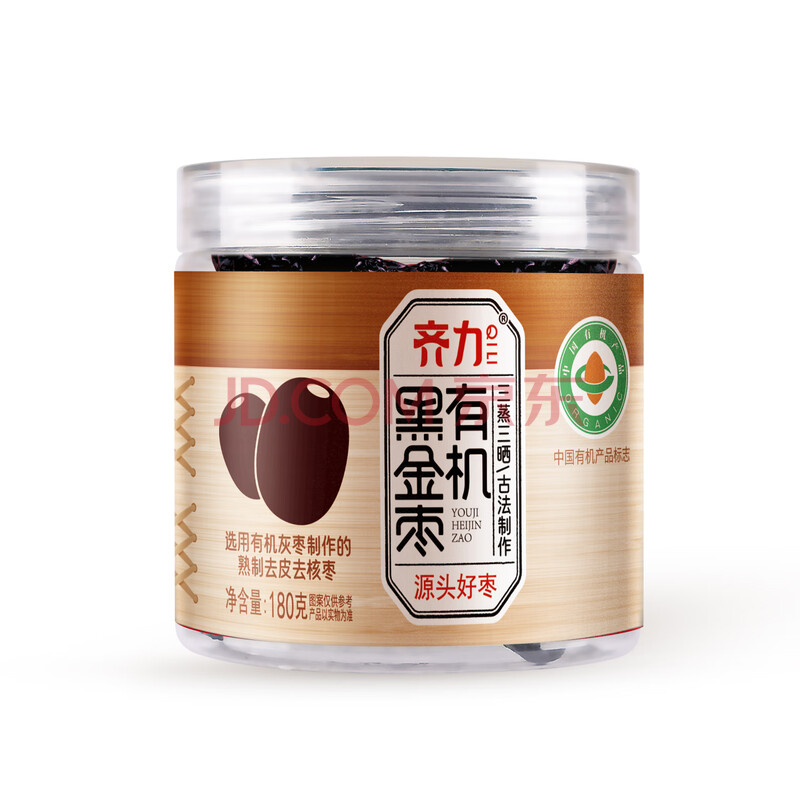 商品名称:齐力有机黑金枣180g三蒸三晒有机蒸枣去皮去核 特级红枣健康熟制