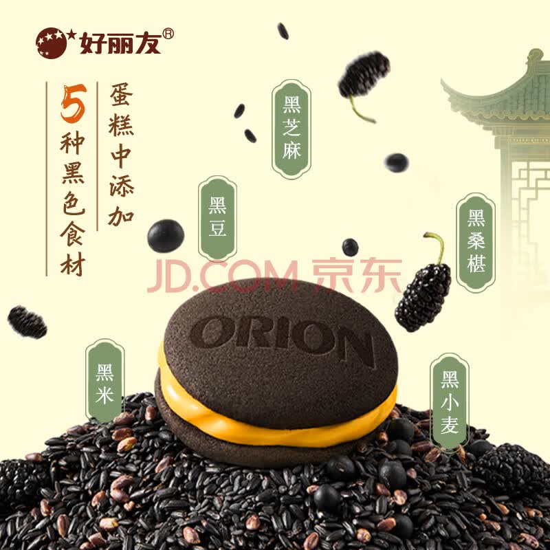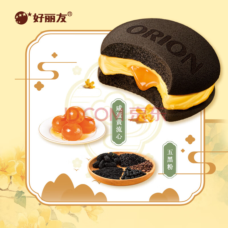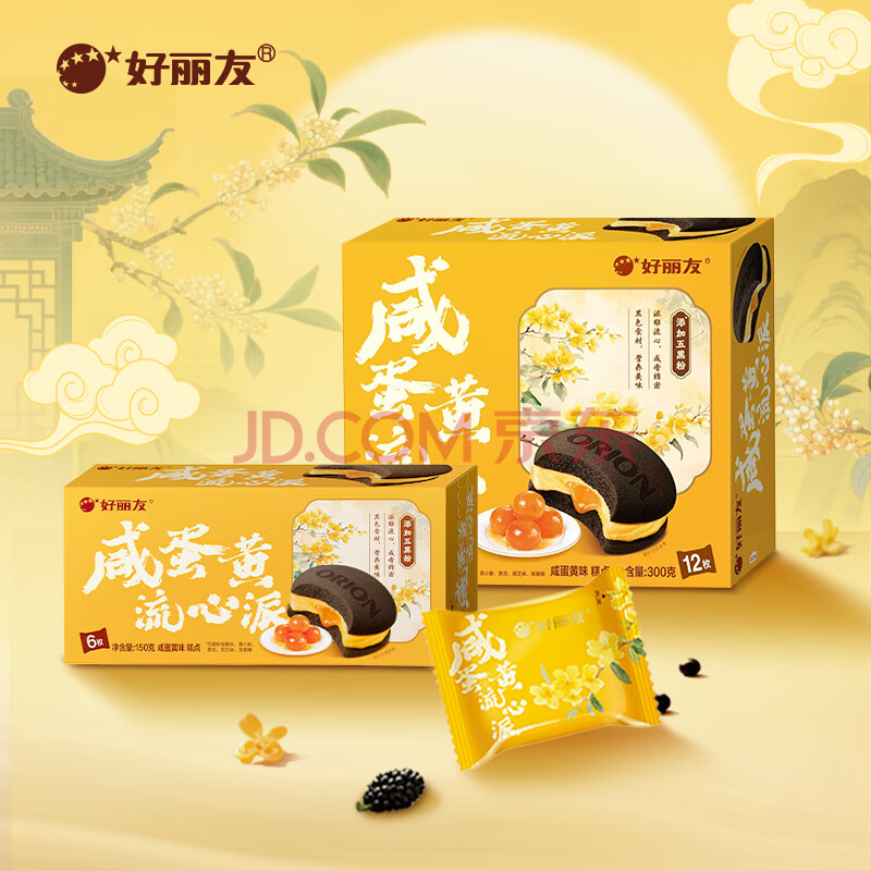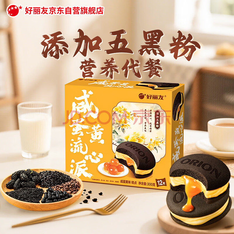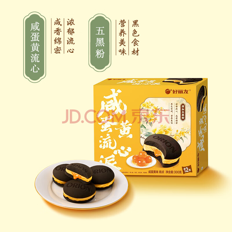 商品名称:好丽友(ORION)咸蛋黄流心派12枚300g 休闲零食五黑粉营养早餐面包糕点蛋糕