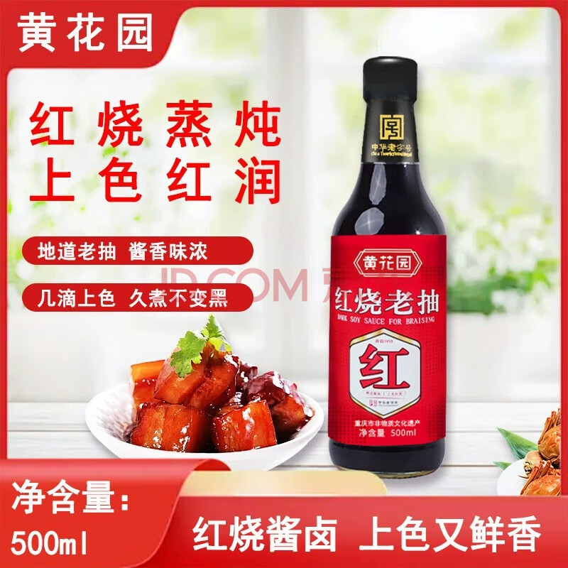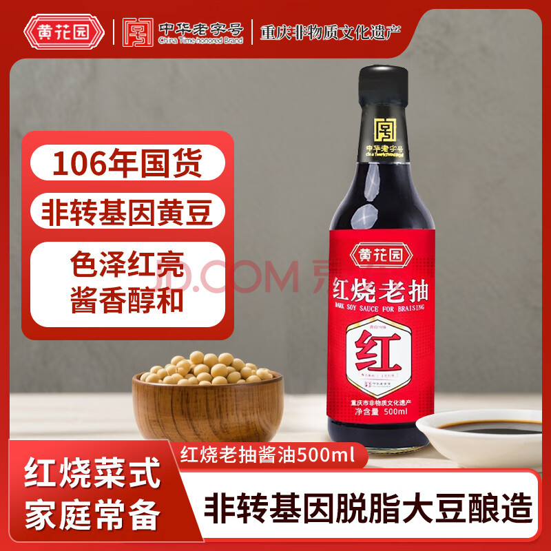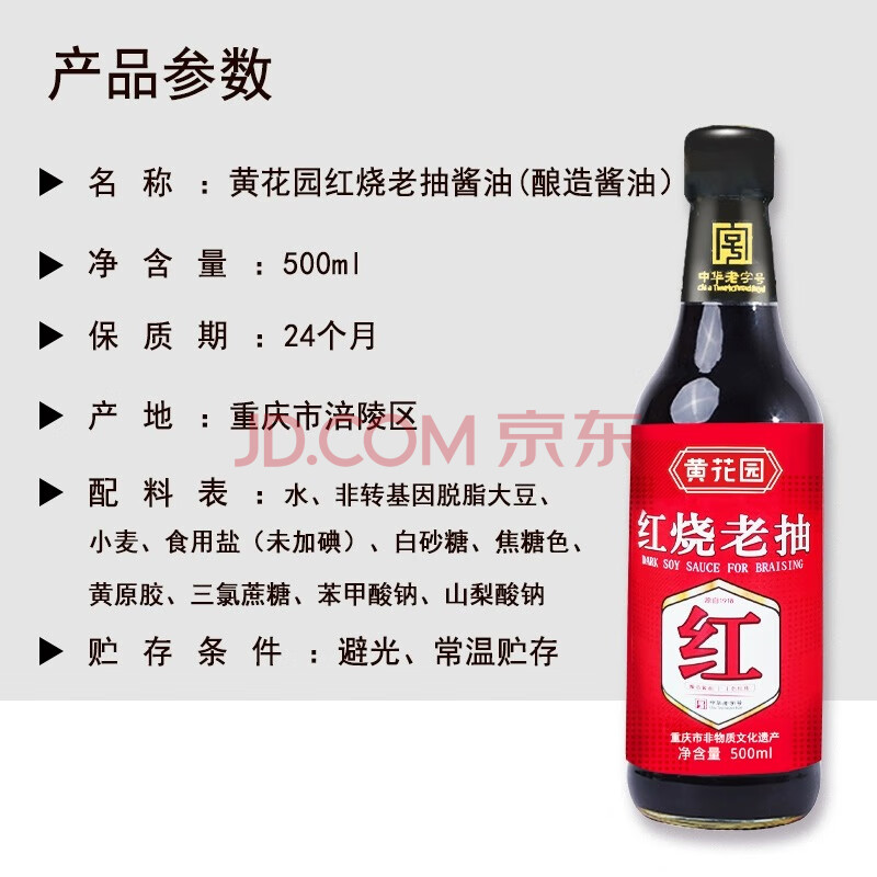 商品名称:黄花园 红烧老抽酱油500ml 老字号 卤味闷炖酱油 酿造酱油