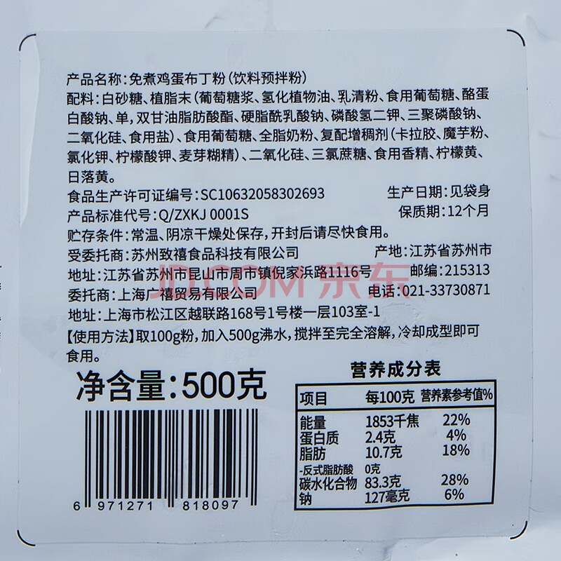 广禧优品免煮鸡蛋布丁粉500g 鸡蛋商用果冻免煮自制烘焙甜品奶茶店专用
