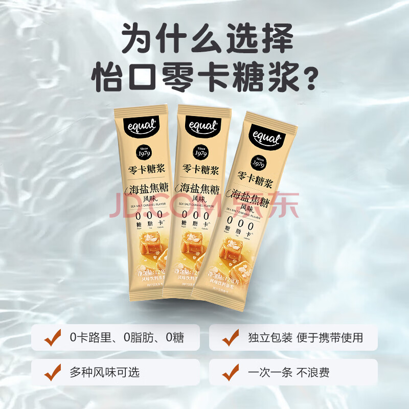 > 怡口(Equal)(EQUAL)零卡糖浆海盐焦糖风味12ml*25条【0脂肪0热量】咖啡伴侣