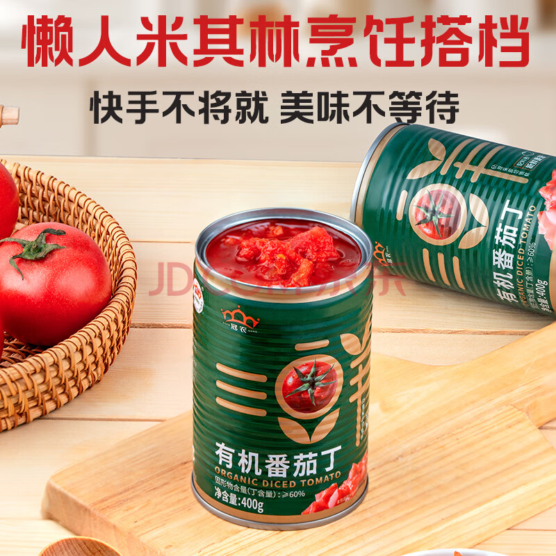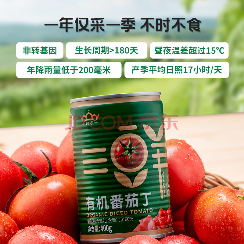 商品名称:冠农股份25年产新疆新鲜有机番茄丁罐头400g/罐 西红柿块番茄酱有机认证