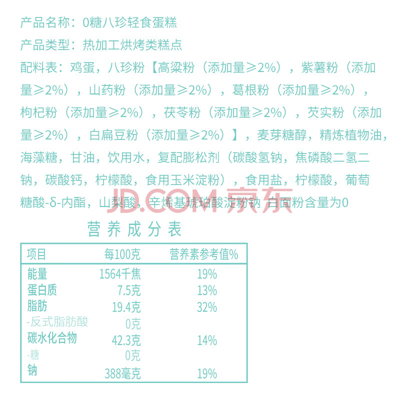 商品名称:勿糖无糖八珍蛋糕500g孕妇糖尿病老年人适用营养早代餐零食品面包糕点