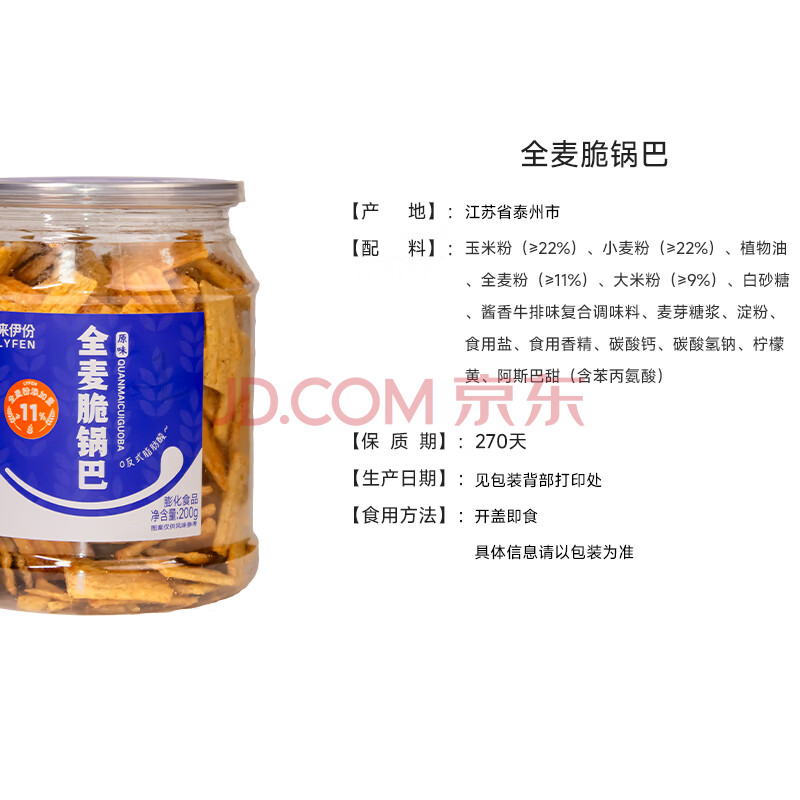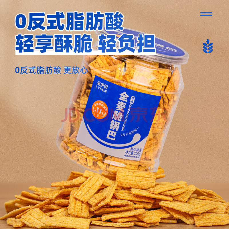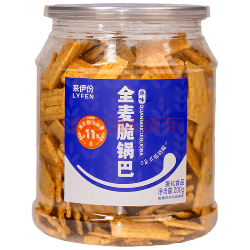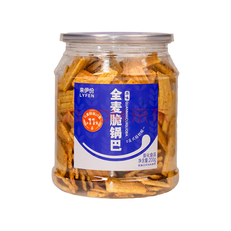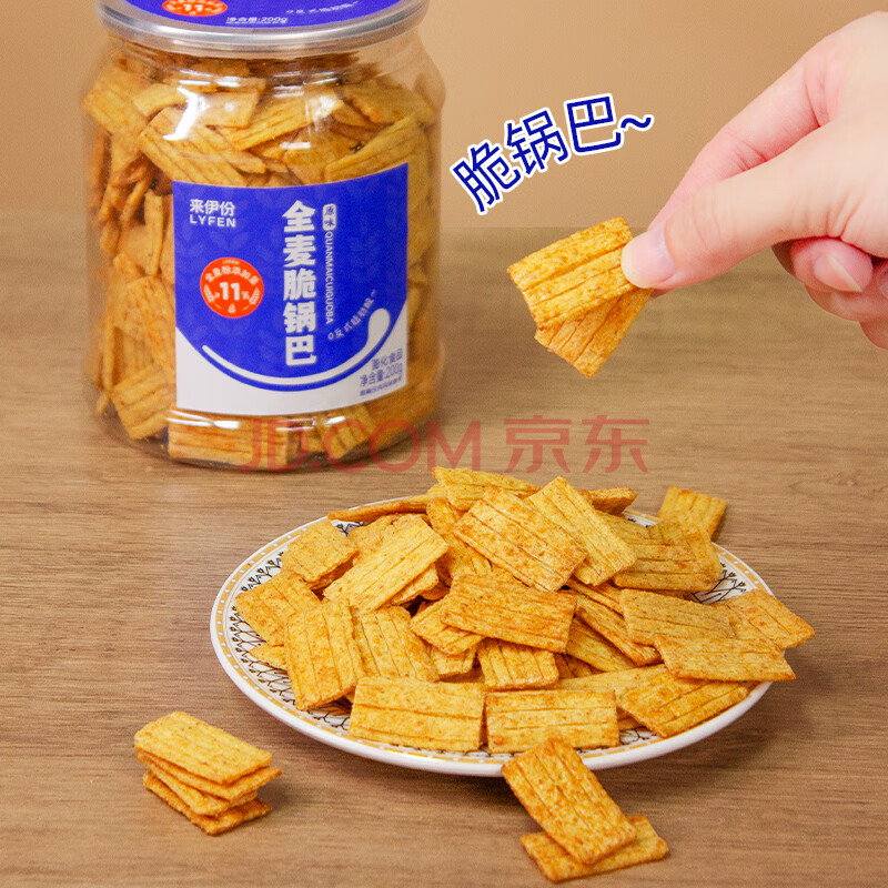 商品名称:来伊份全麦脆锅巴200g*2罐装 休闲零食谷物办公室解馋追剧小吃网红零食