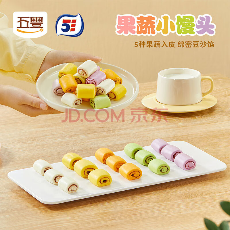 > 五丰果蔬小馒头500g*2 140只儿童早餐半成品绿色无添加五种果蔬豆沙供