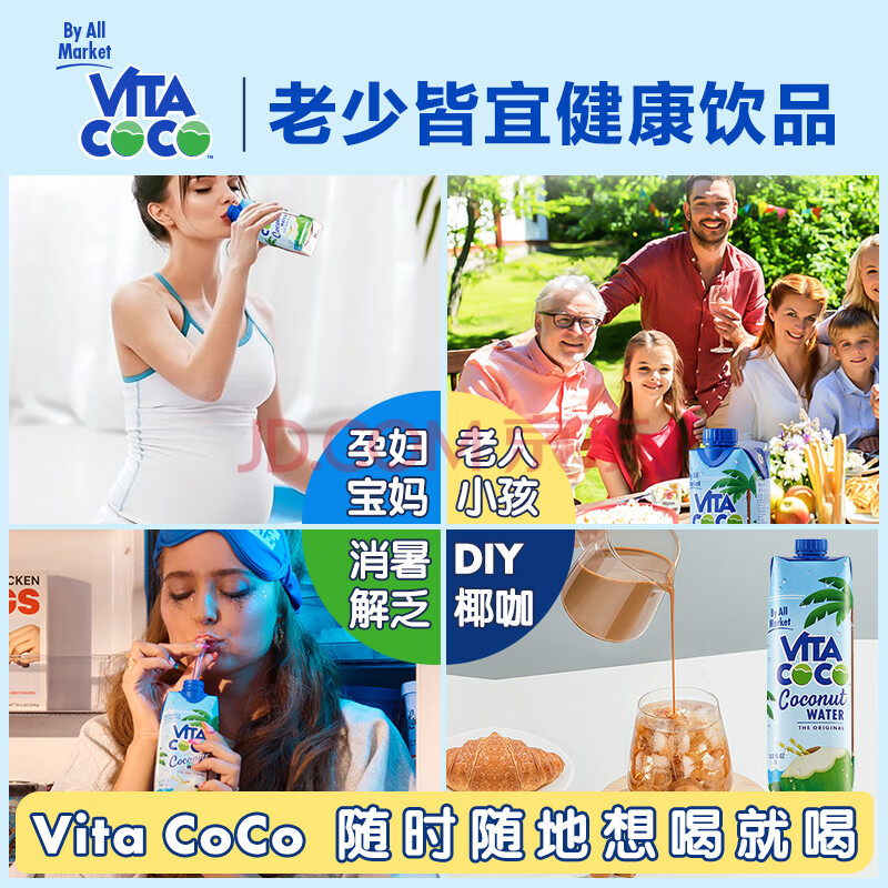 唯他可可(Vita Coco)NFC椰子水 椰汁饮料低糖低卡含电解质原装进口果汁1升/瓶