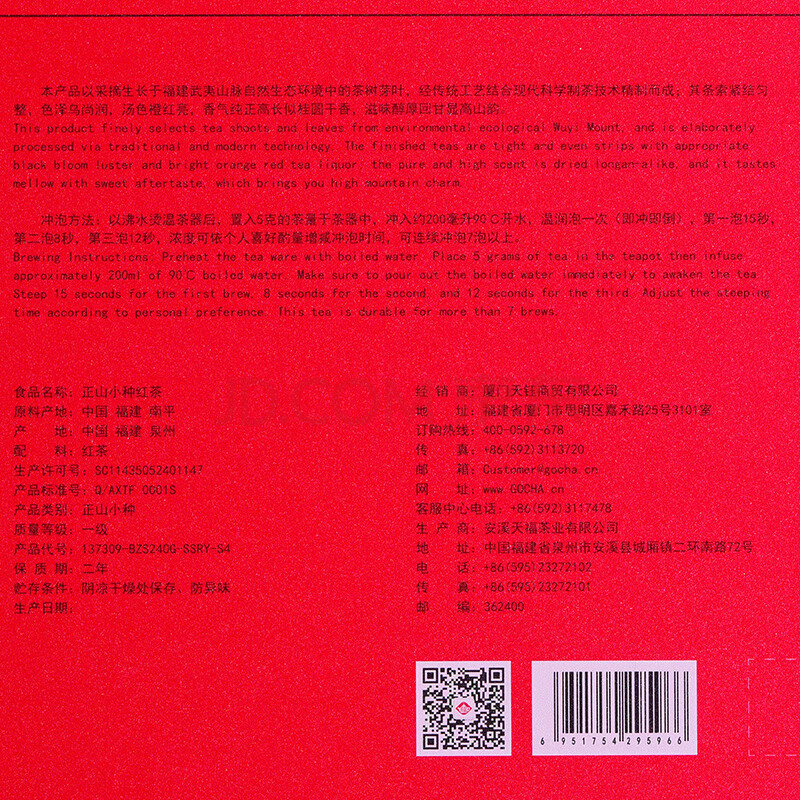 商品名称:天福茗茶红茶 四时如意福建正山小种茶叶240g礼盒装茶叶伴手礼