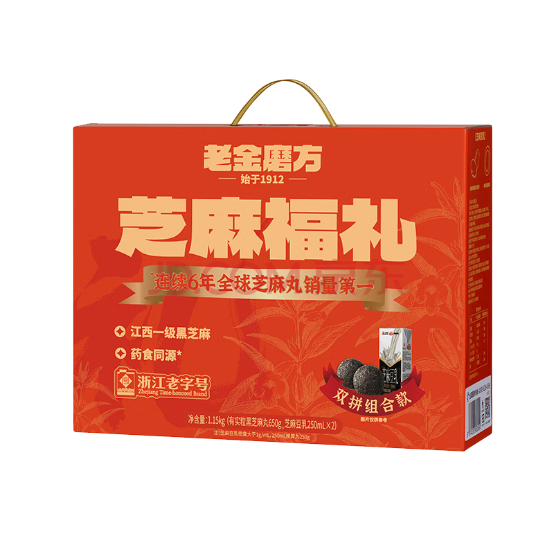 > 老金磨方红枣黑芝麻丸豆乳饮料健康中秋送礼礼品团购 芝麻福礼1.15kg