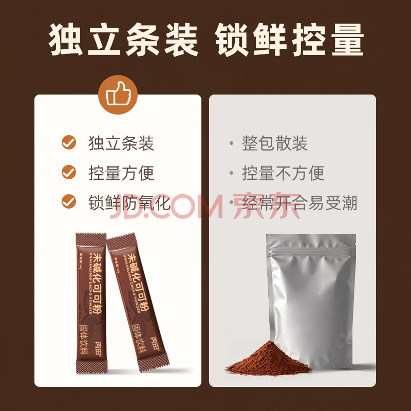 > 丙田 100%纯 未碱化生可可粉200g 进口0加糖高纤健身可烘焙巧克力条装