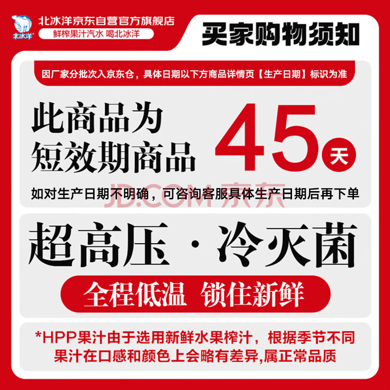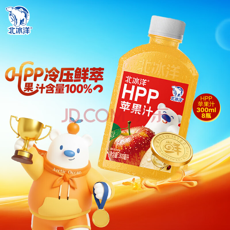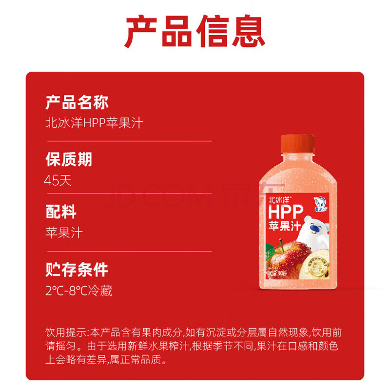 商品名称:北冰洋HPP苹果汁 果汁饮料 鲜果冷压榨果汁300ml*8瓶 整箱