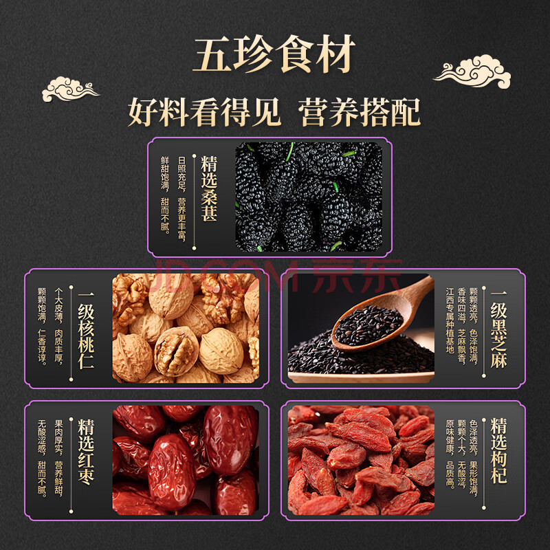 劲家庄核桃桑葚黑芝麻丸5罐装礼盒 111g/罐 何家劲低GI健康独立包装