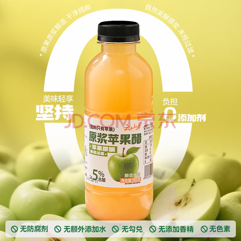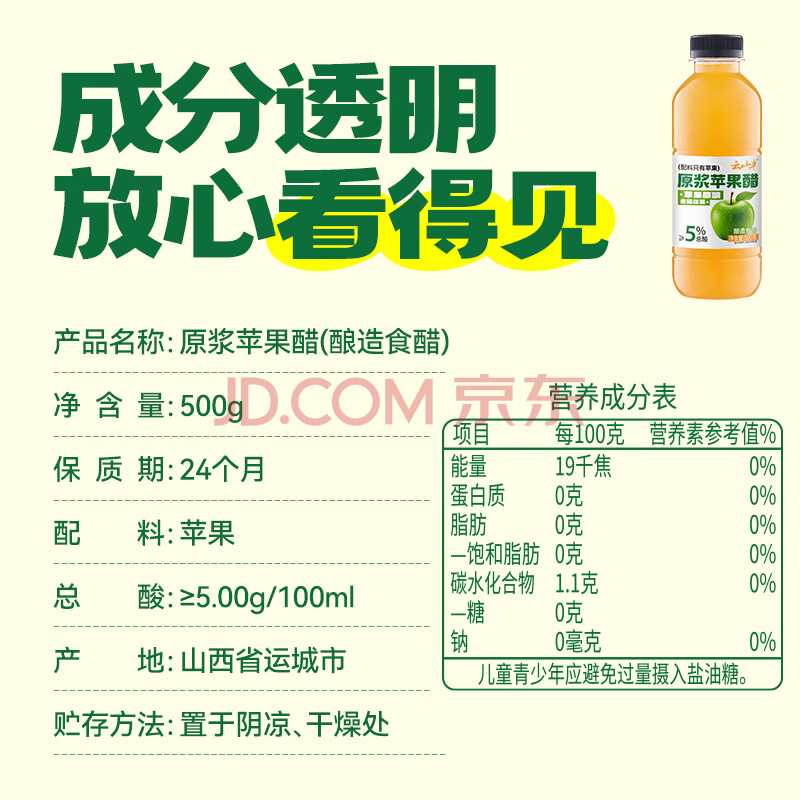 商品名称:云山半 原浆苹果醋500g 100%原果发酵食醋 0糖0脂0色素 生酮非饮料体重