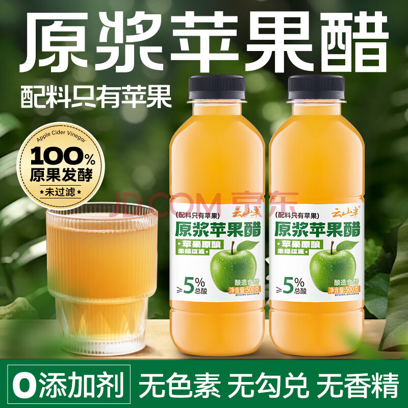 > 云山半 原浆苹果醋500g 100%原果发酵食醋 0糖0脂0色素 生酮非饮料体重