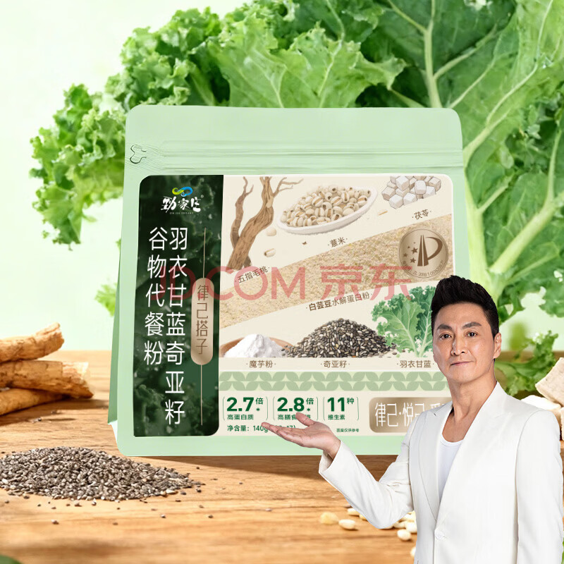 商品名称:劲家庄羽衣甘蓝奇亚籽谷物代餐粉膳食代餐米白芸豆纤维饱腹食品 140g/袋