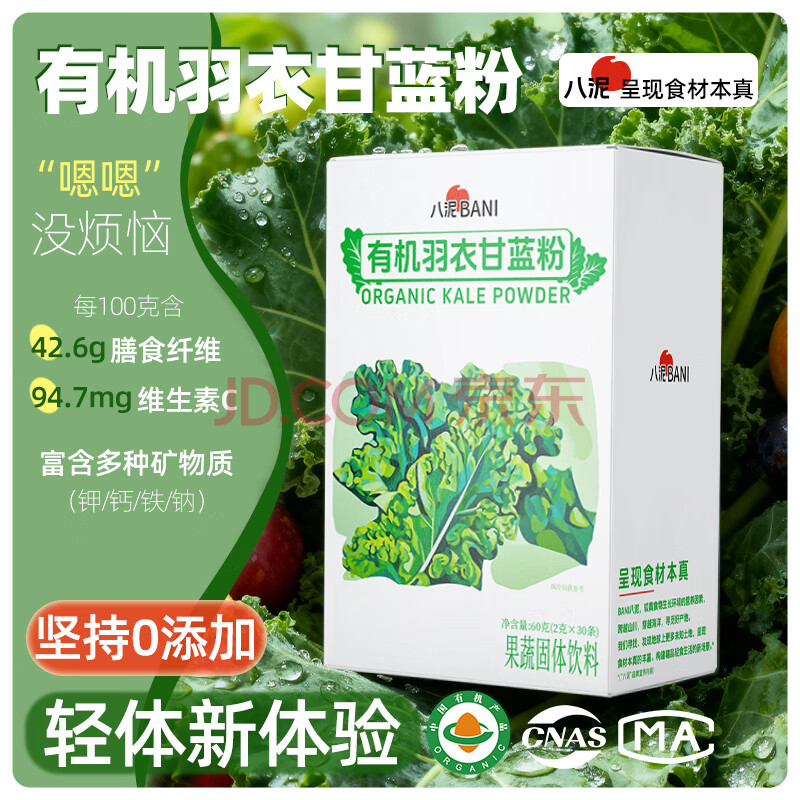 > 八泥有机羽衣甘蓝粉冲饮果蔬菜粉健康高膳食纤维青汁早餐代餐2g*30条