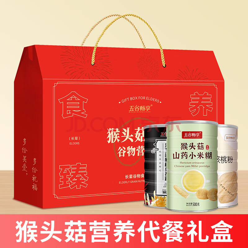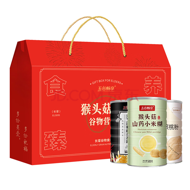> 五谷畅享猴头菇山药小米糊黑芝麻高钙核桃粉中秋节送长辈父母礼盒装1550g