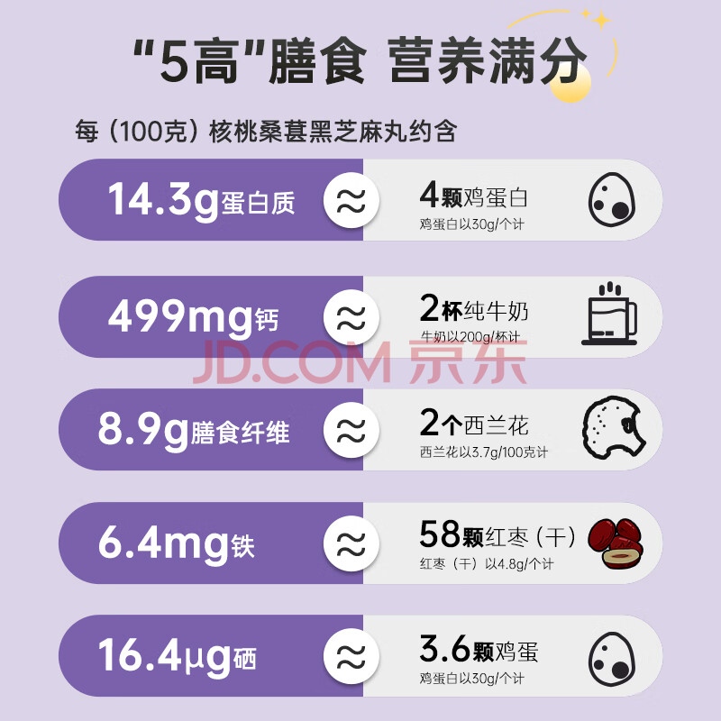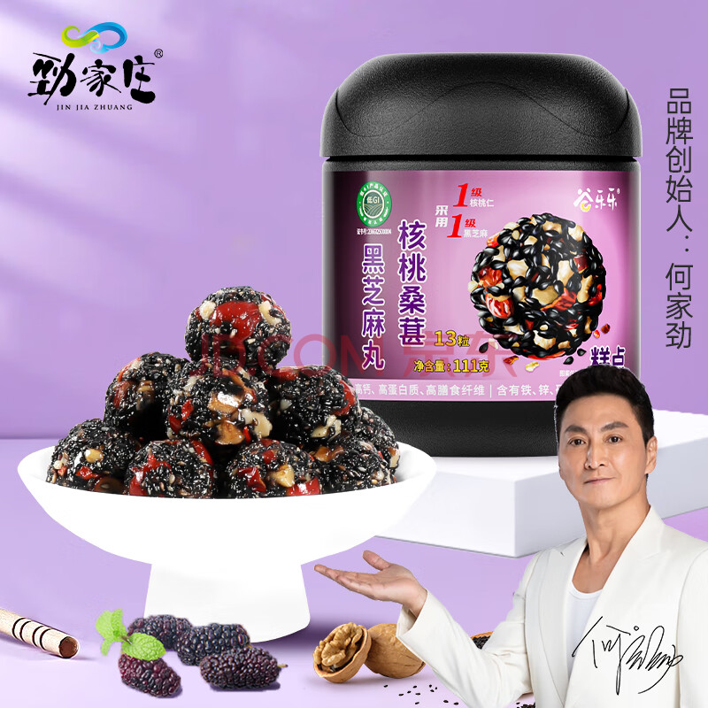 商品名称:劲家庄核桃桑葚黑芝麻丸5罐装礼盒 111g/罐 何家劲低GI健康独立包装