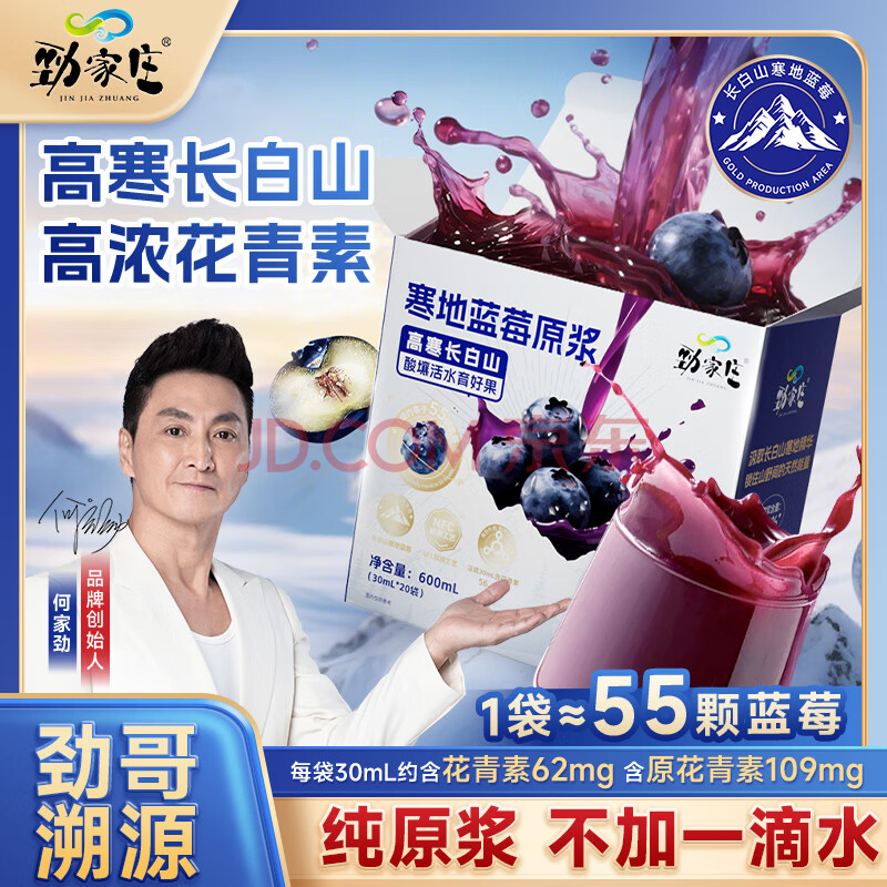 > 劲家庄蓝莓原浆长白山NFC鲜榨100%蓝莓花青素600ml*1盒