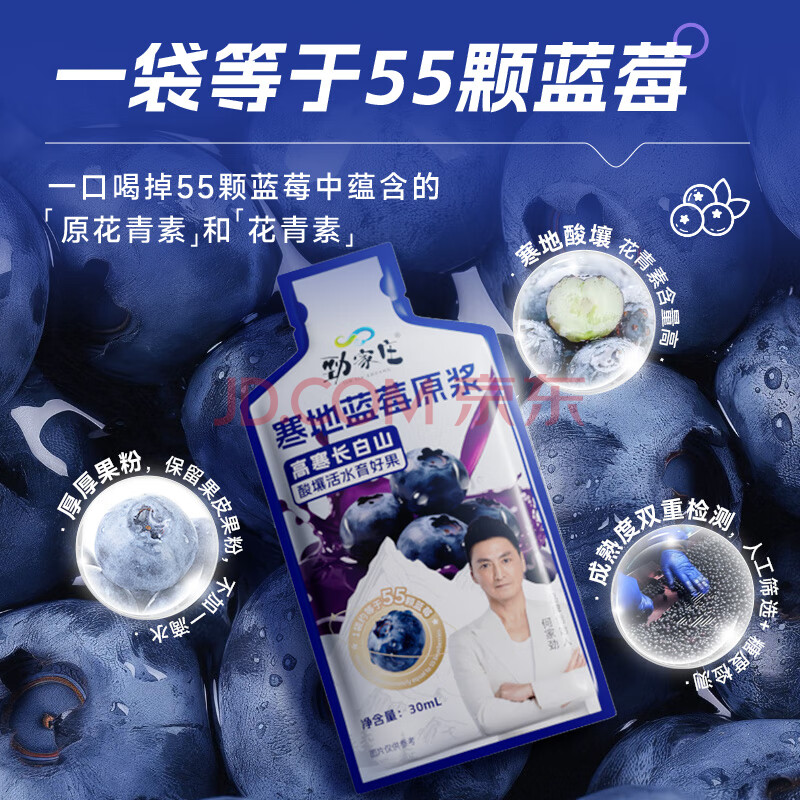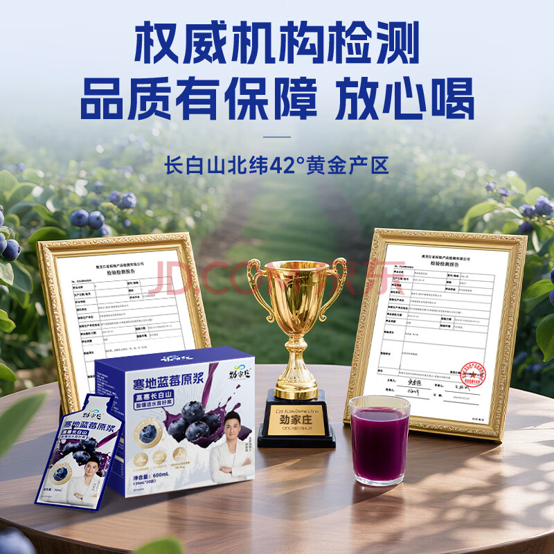 商品名称:劲家庄蓝莓原浆长白山NFC鲜榨100%蓝莓花青素600ml*1盒