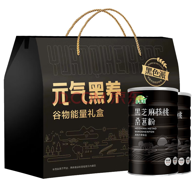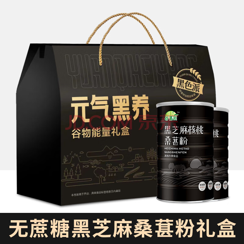 谷嘉能无蔗糖黑芝麻核桃桑葚粉600g*2罐年货节送礼物送父母长辈礼盒装